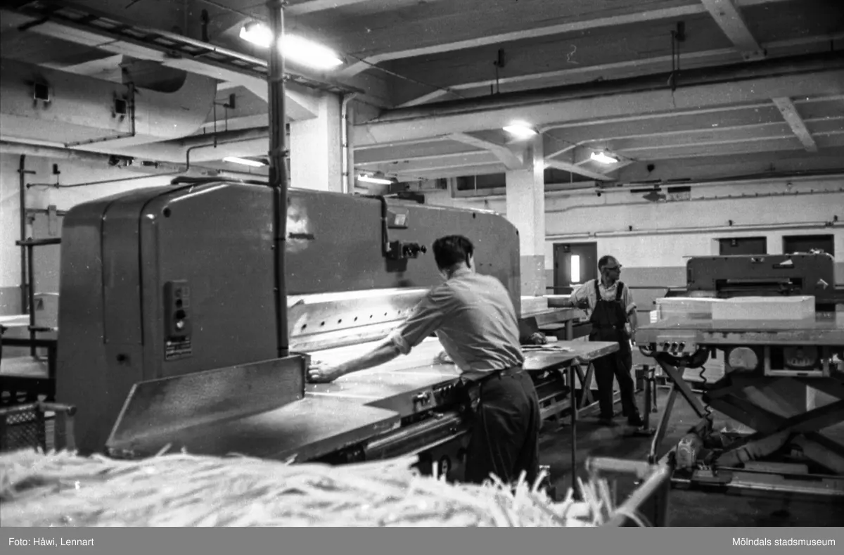 Män i arbete vid skärmaskin på pappersbruket Papyrus i Mölndal, hösten 1970. Byggnad 18 eller 19.