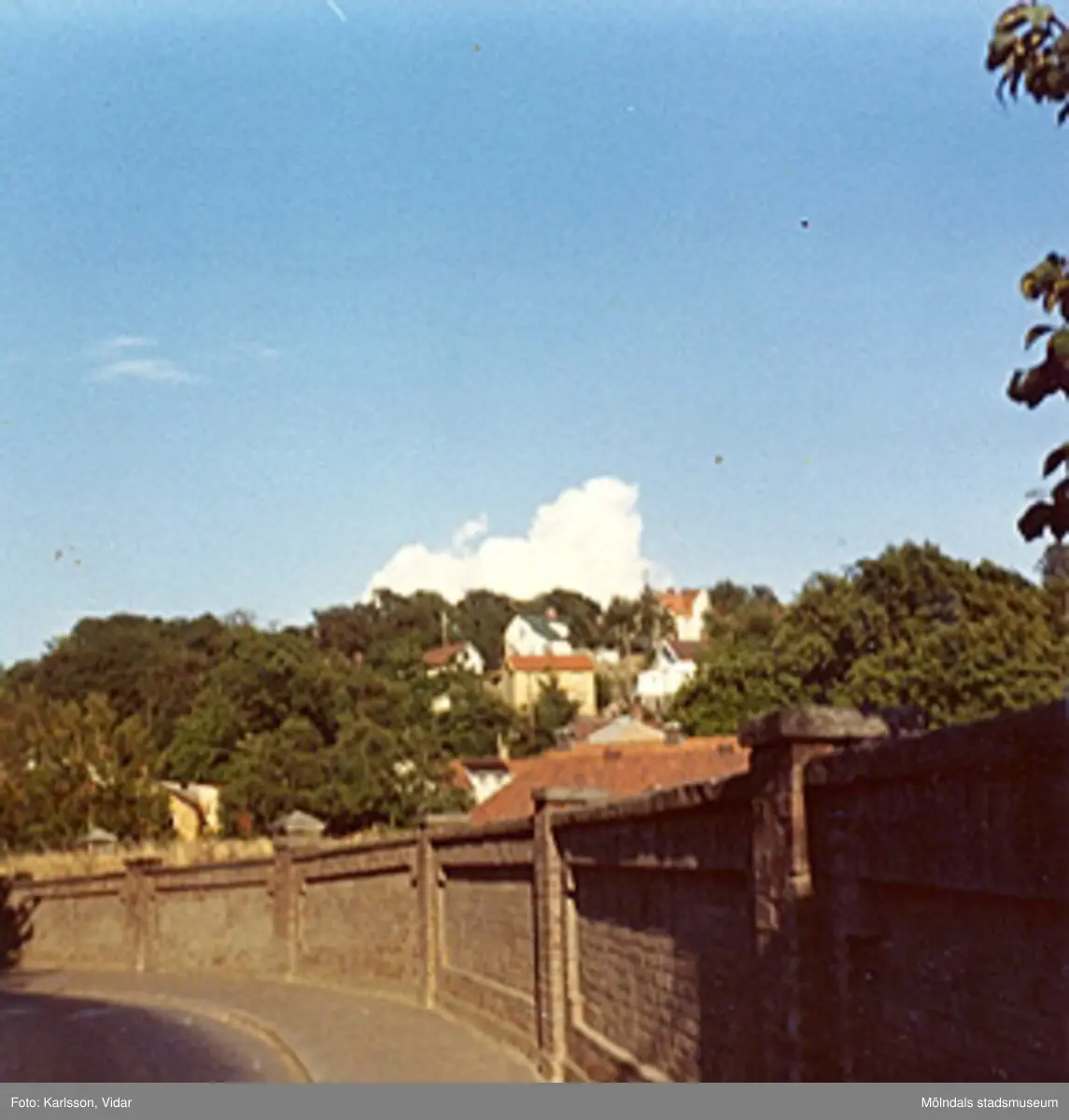 Papyrus mur till höger sedd från Kvarnbygatan. Övre delen av Kvarnbyn syns i bakgrunden.