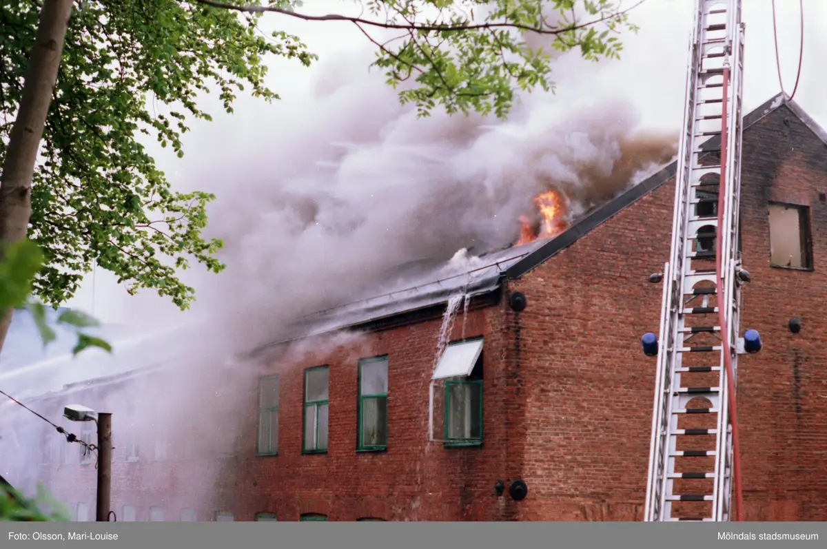Soab-branden i Stora Götafors den 4 juni 1986. Stege som används för att bekämpa branden.