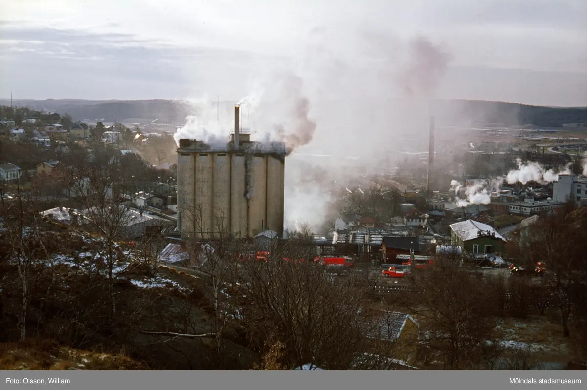 Soabs silotorn (för linfrö) och industriområde. Kvarnbyn i bakgrunden. Okänt årtal.