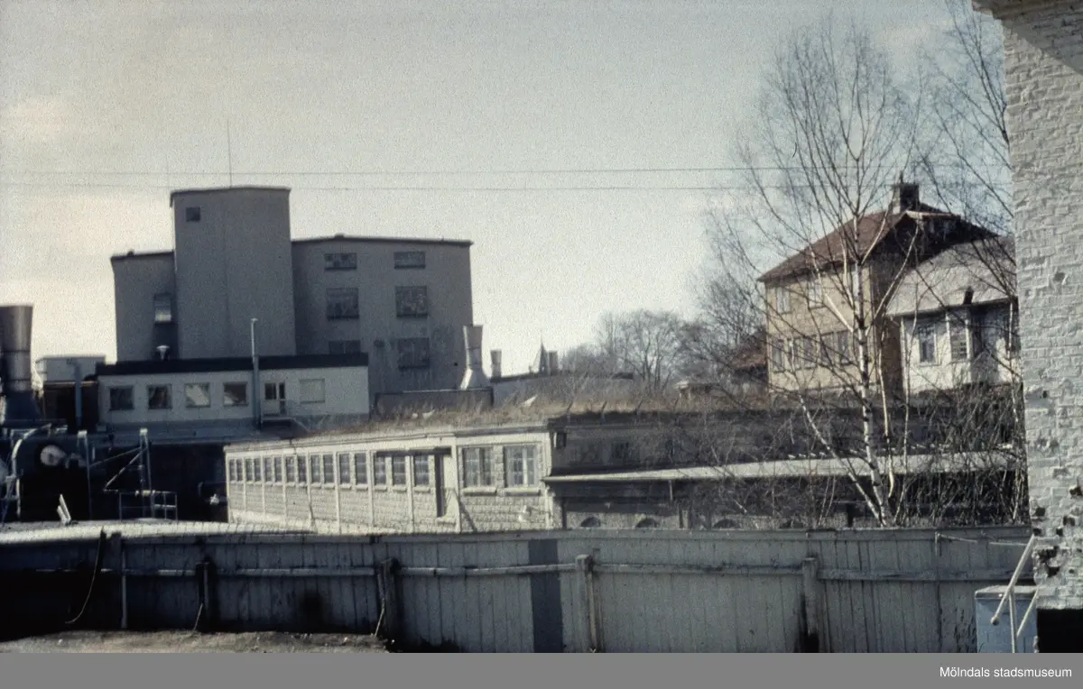 Vy sett från Norra Forsåkersgatan mot Papyrus vattenrening i nordväst, 1970-tal. Till höger ses Kvarnbygatan 33 och 35 samt Forsåkersgatan 2 A (som hade den äldre adressen Kvarnfallet 27) och som kallades för Sveaborg. Huset låg vid Forsebron, men här ses bara en liten del av husets hörn.