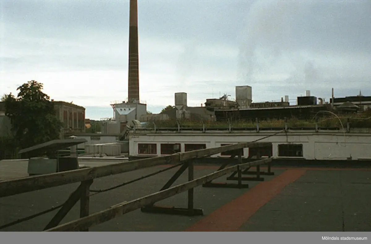 Papyrusområdet samt dess skorsten, sett från ett tak österifrån.