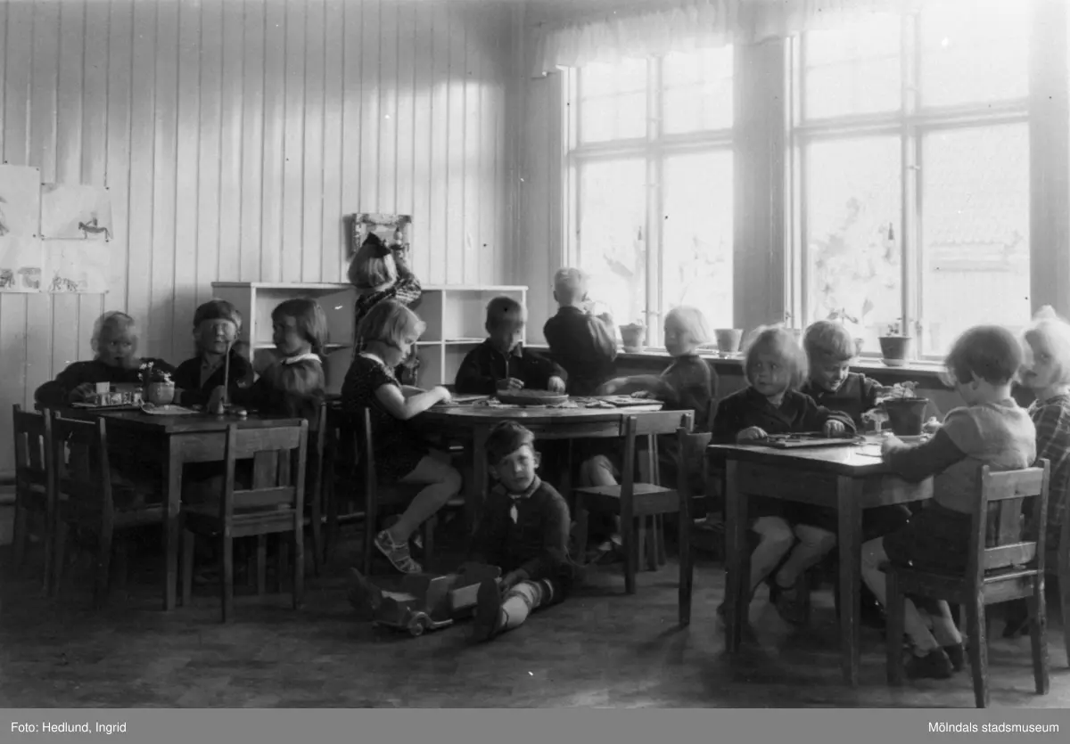 Bosgårdens barnträdgård 1938-1945. Barn som sitter i en skolsal.