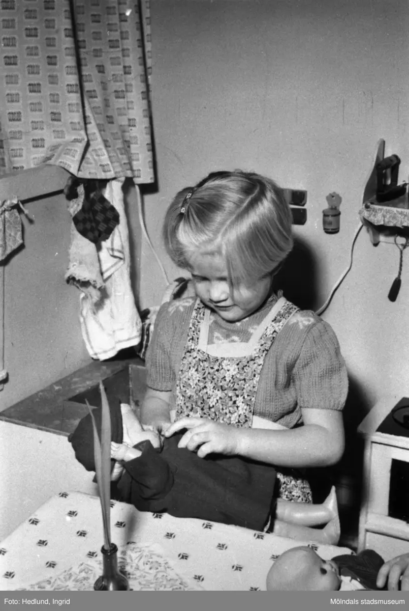 Bosgårdens barnträdgård 1938-1945. En flicka som leker med en docka.