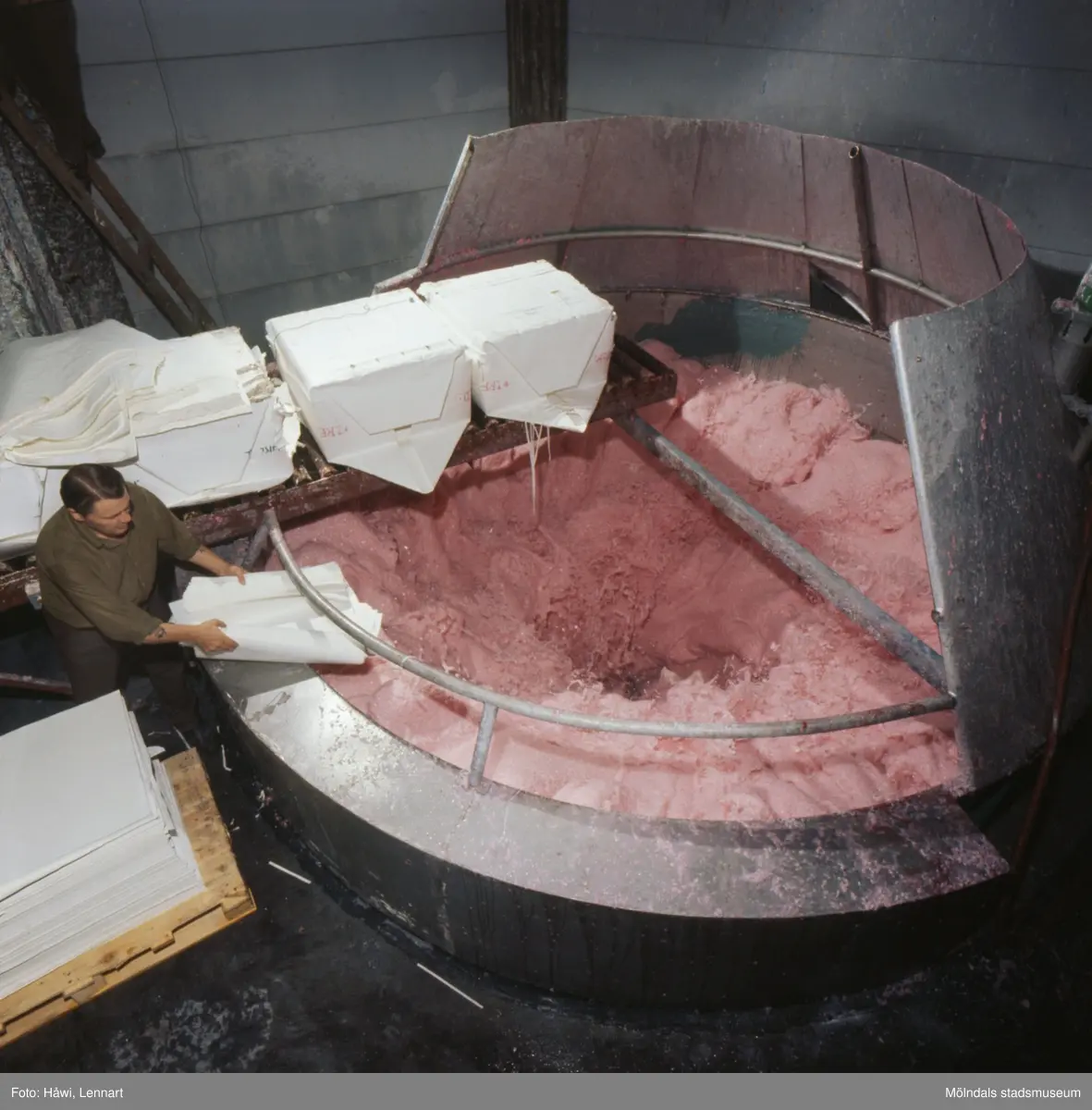 Man i arbete vid holländeri på pappersbruket Papyrus i Mölndal, år 1970.
