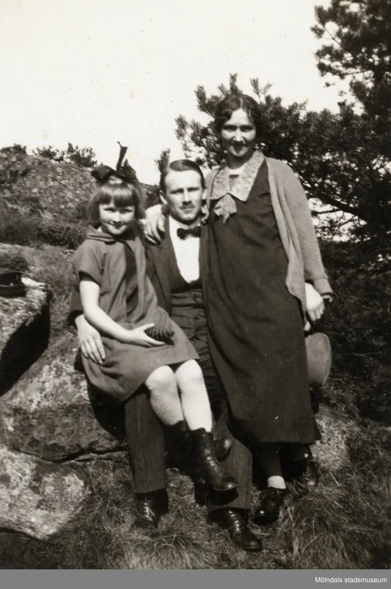 Familjen Börjesson Hallgren. Från vänster Elna Börjesson, Gustaf Adolf Hallgren och Hilda (Lisa) Börjesson Hallgren. Fotografi ur album som tillhört Hilda Börjesson Hallgren.