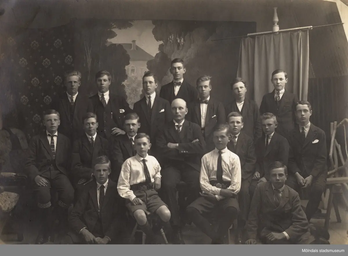 Skolfotografi. Åke Börjesson, f. 1910, sitter som nr 3 från vänster på mittraden.