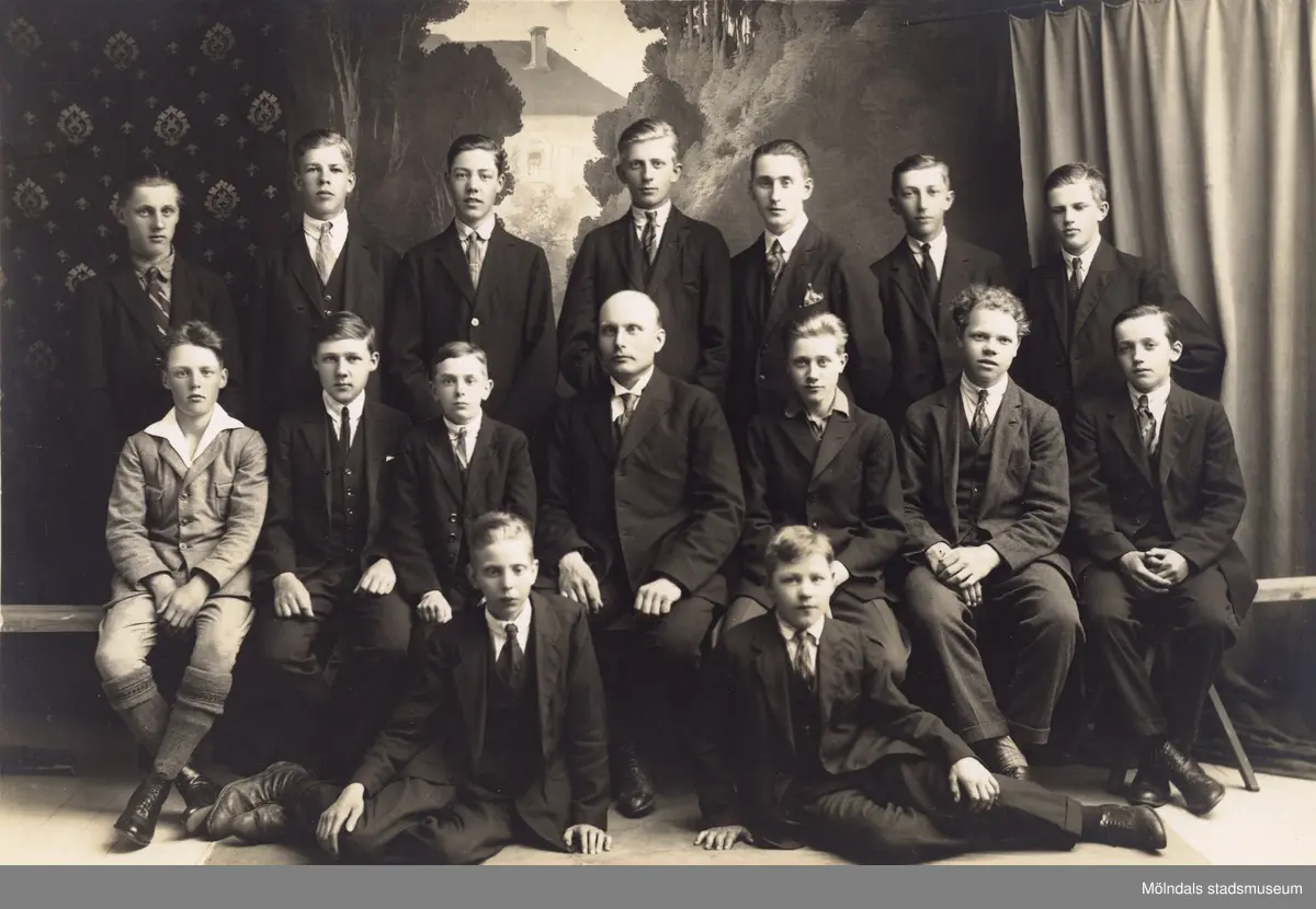 Skolfotografi. Åke Börjesson, f. 1910, sitter som nr 2 från vänster på mittraden.
