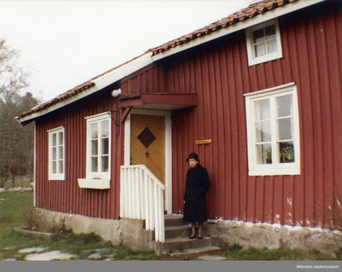 Inga-Lill Börjesson utanför Långåkers hembygdsgård i Kållered, samma månad som maken, Åke Börjessons bortgång.