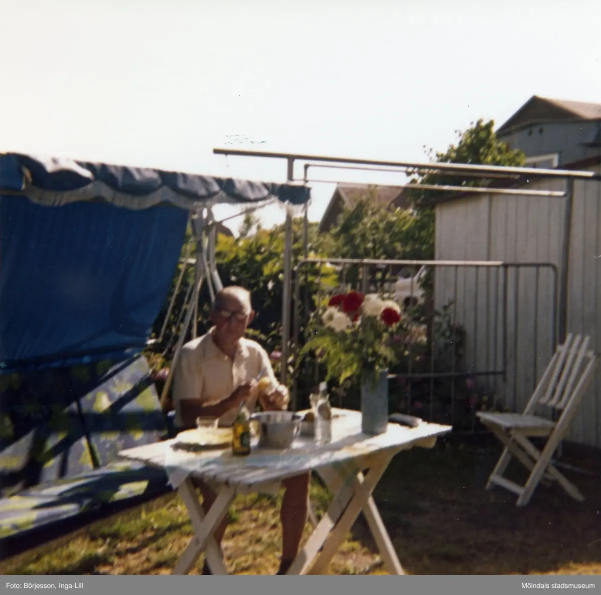 Åke Börjesson i trädgården. 25-årig bröllopsdag.