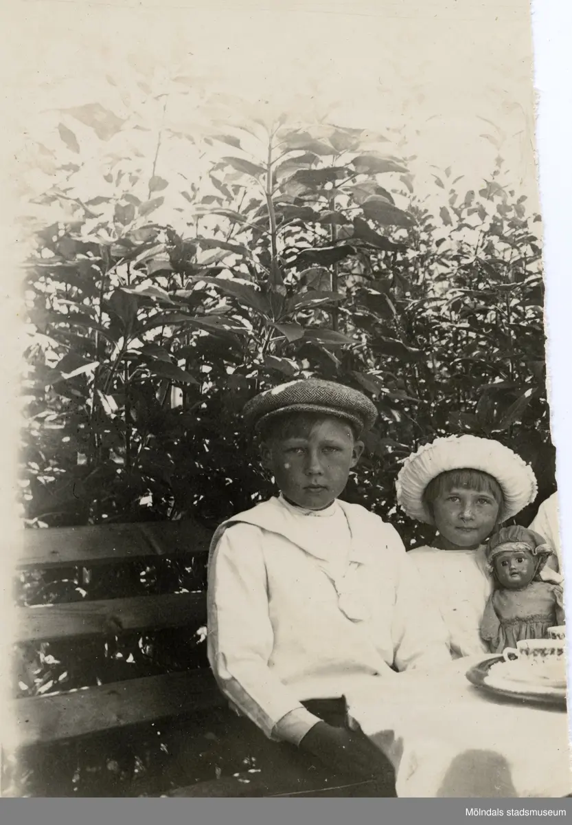Porträtt av Åke och Elna Börjesson som barn. Fotografi ur album som tillhört Åke Börjesson.