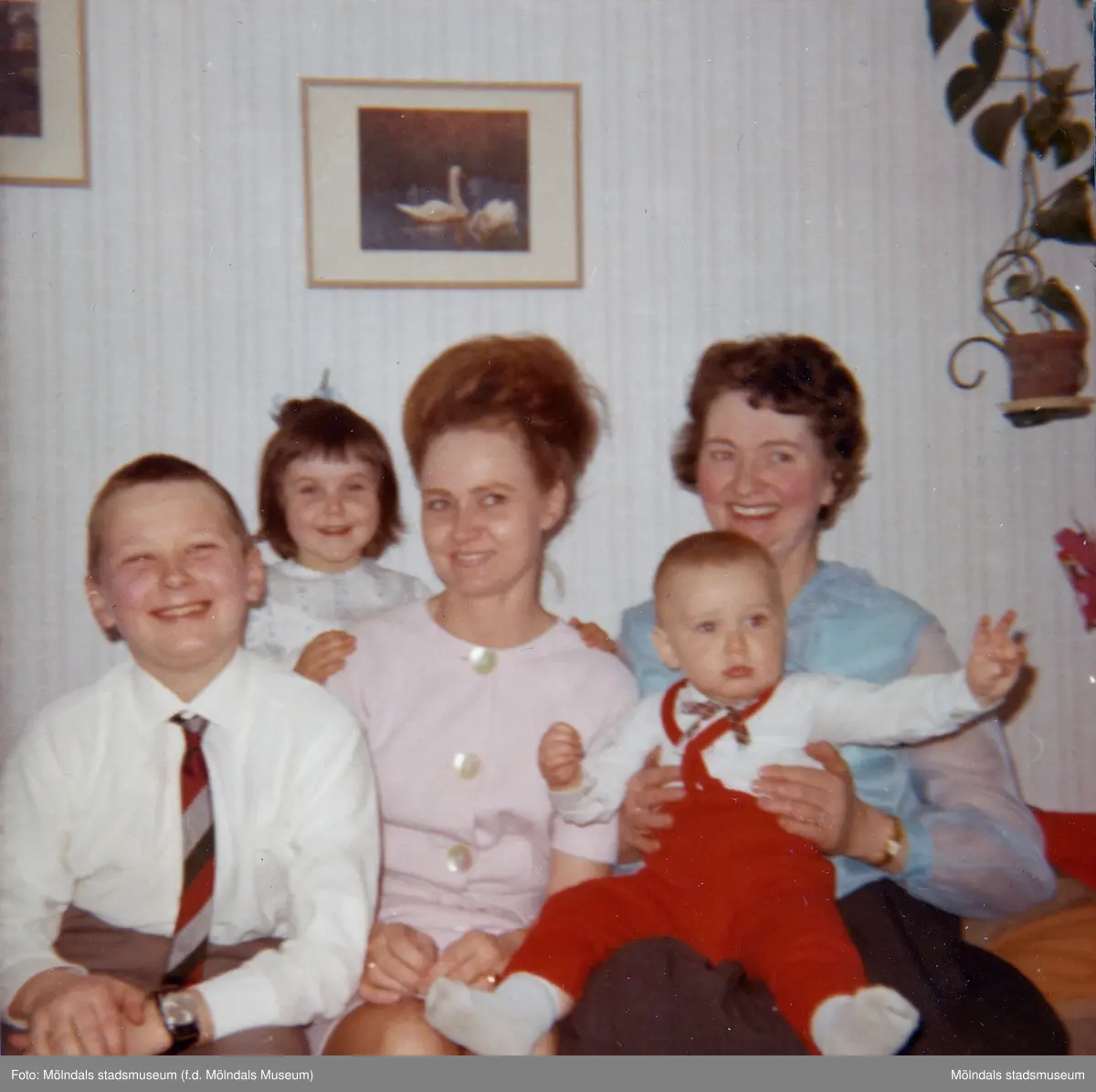 Familjen Jansson sitter samlade år 1965. Från vänster: 11-åriga Christer Jansson (farbror till Lars-Åke), 5-åriga Ilse Tobiasson som sitter snett bakom mamma Ninnie Tobiasson, farmor Maj Jansson (Christers mor) med 1-åriga barnbarnet Lars-Åke Tobiasson i knäet. Lägenheten var en 1:a på Krokslättsgatan 3.