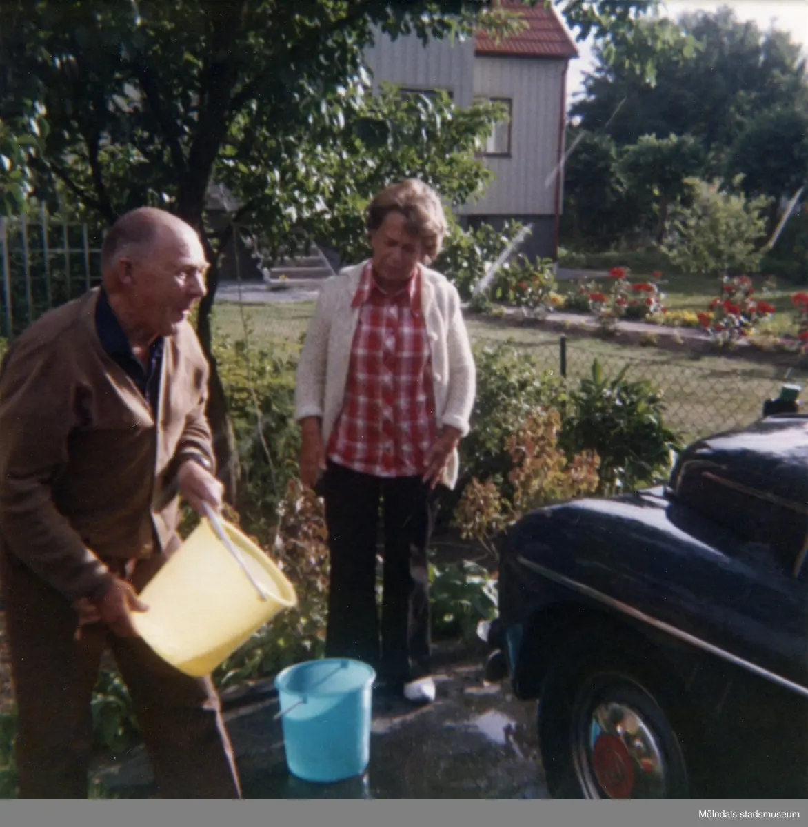 Solhemsgatan 10, år 1978. Åke och Inga-Lill Börjesson tvättar PV:n. I bakgrunden Solhemsgatan 12.
