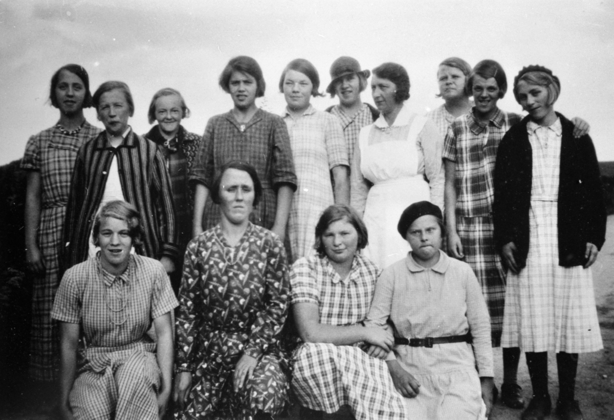 Vårdarinnan Anna Hasselberg (gift Larsson) med sina elever på Stretereds skolhem.