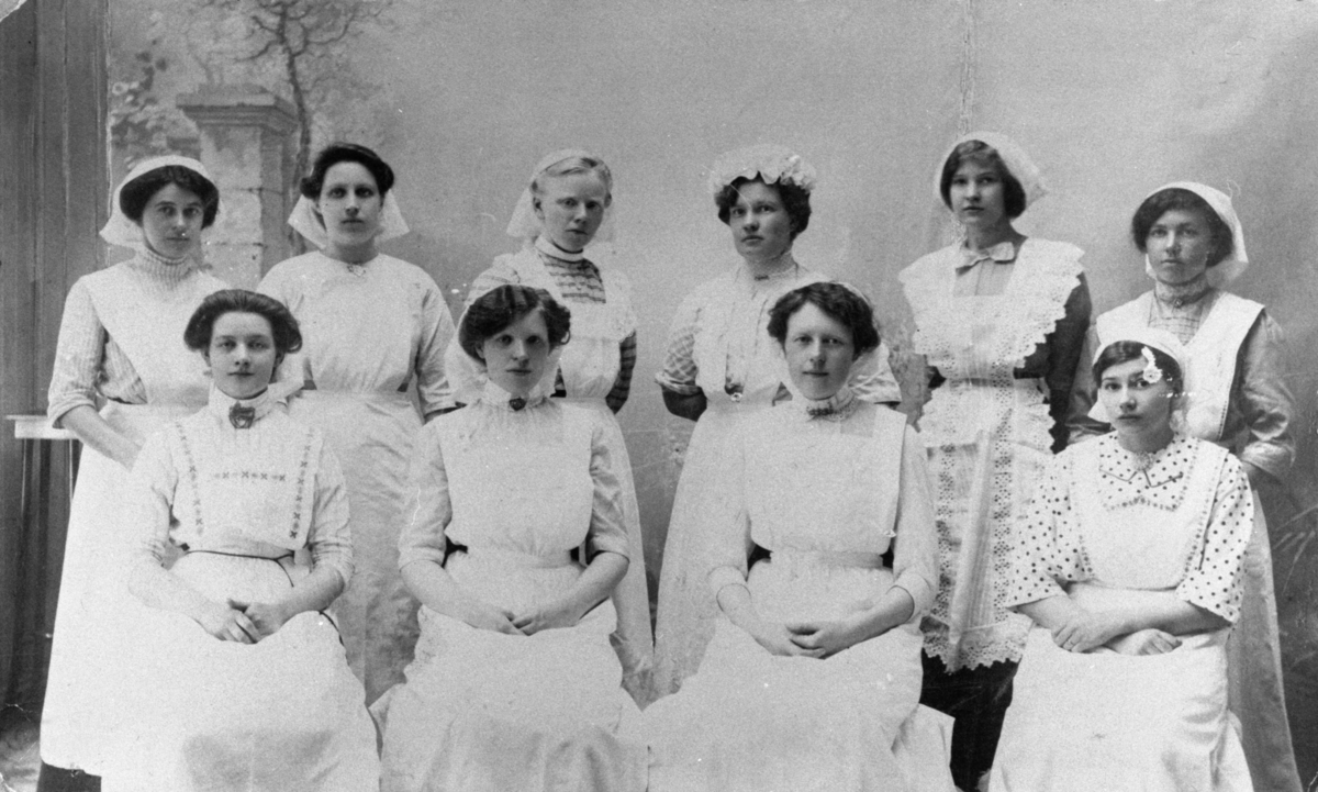 Nedre raden: 2:a fr. vänster Signe Nettelbladh (gift von Brömsen), 3:e fr. vänster Agnes Nettelbladh, 4:e fr. vänster Svanteson. O.B.S. Uppgifter saknas.