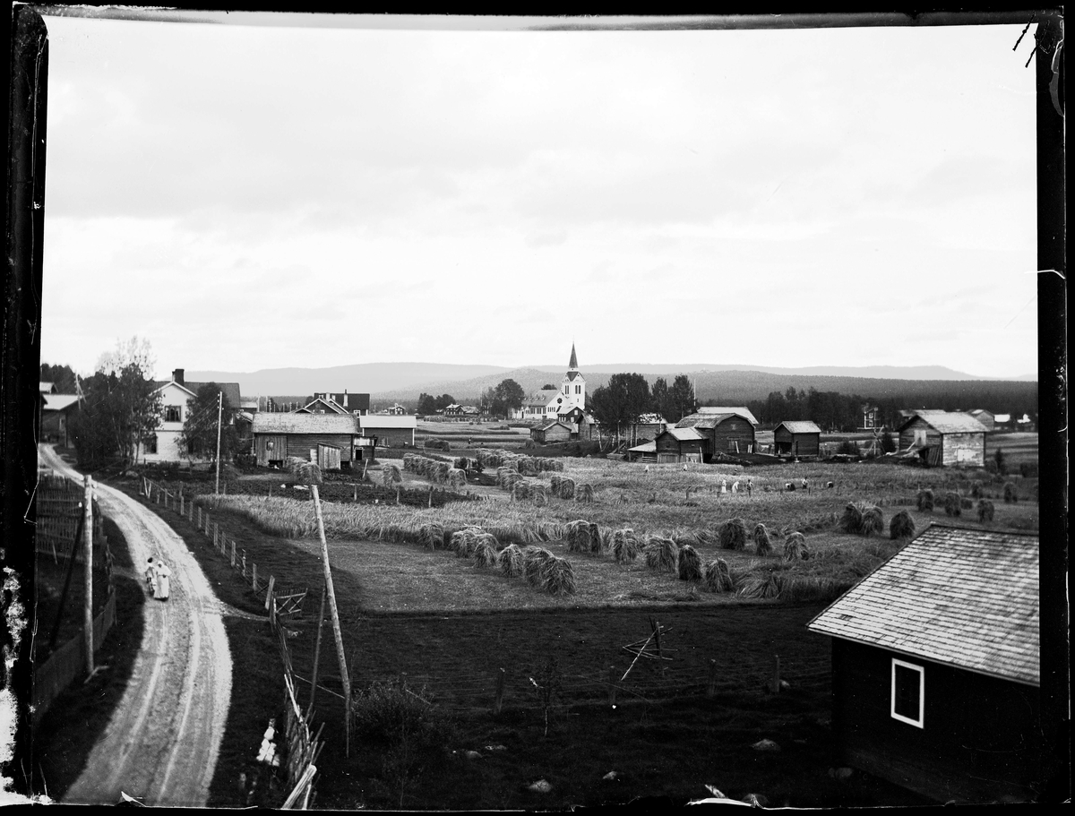 Vy över Älvros by, Härjedalen. Från gamla klockstapeln, närmast Jojonsgården.