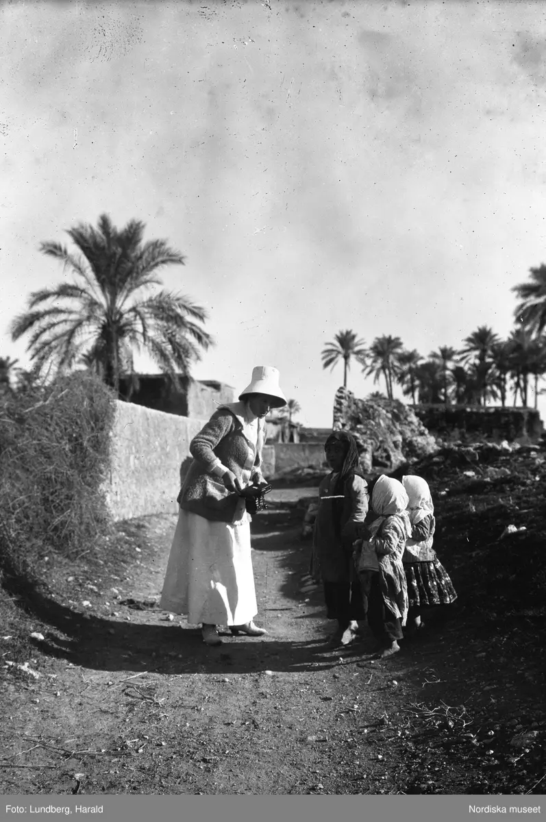 Persien. Ida Uggla pratar med tre persiska barn i en by.