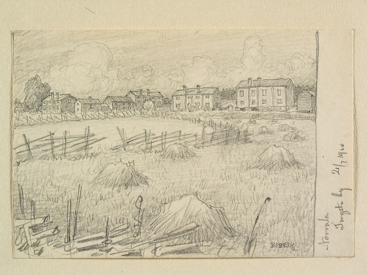 Hälsingland, Norrala sn., Ingsta by. Teckning av Ferdinand Boberg