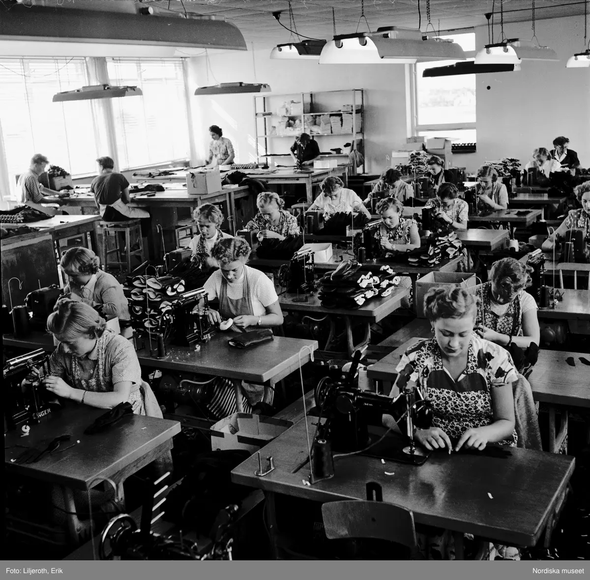 Tekoindustri. Kvinnor syr handskar i Laholm.