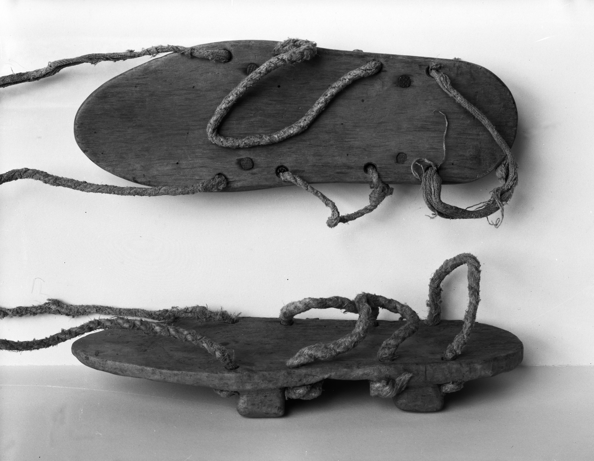 Träsandaler, "Klåmper", från Nuckö, Estland. Nordiska museets inv.nr NM.0145305