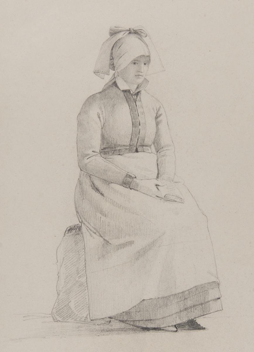 Mätta Tuas Dotter från Västra Göinge, Ingaberga.Blyertsteckning av Otto Wallgren.