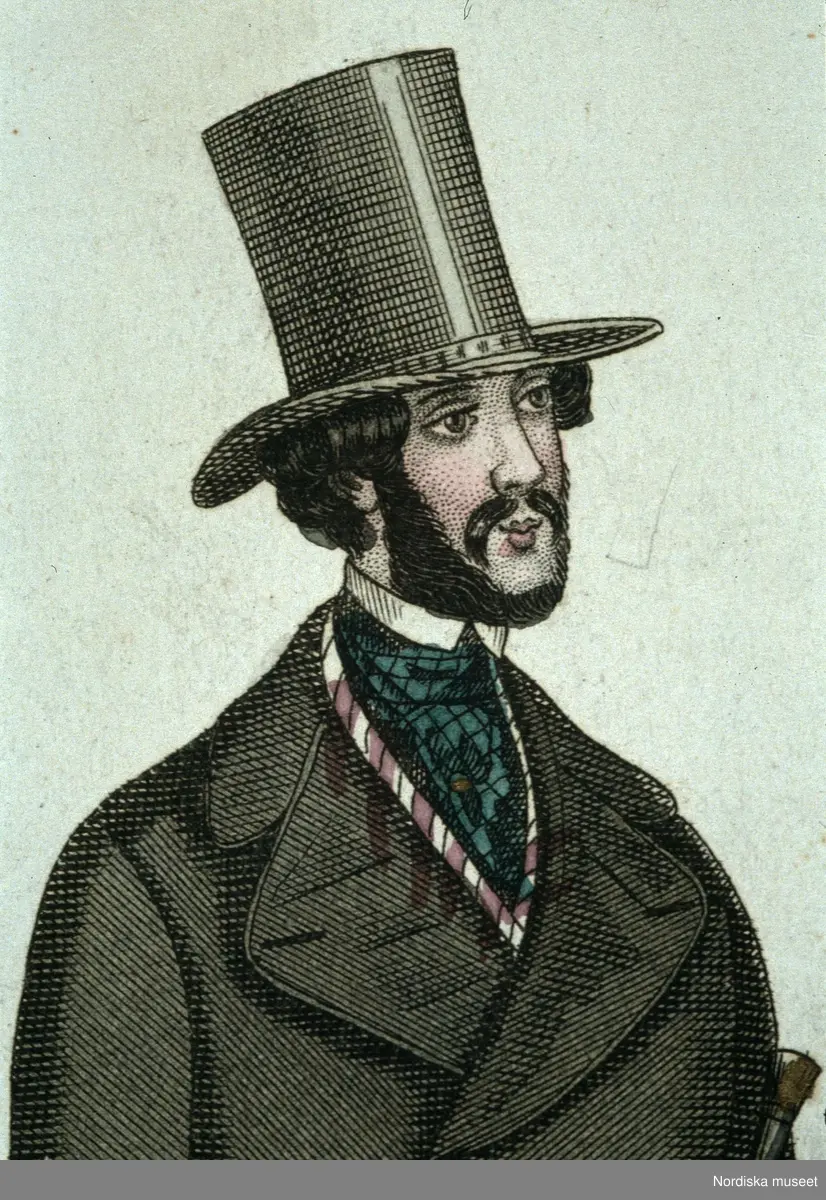 Detalj av modeplansch i Stockholms Modejournal, augusti 1843.