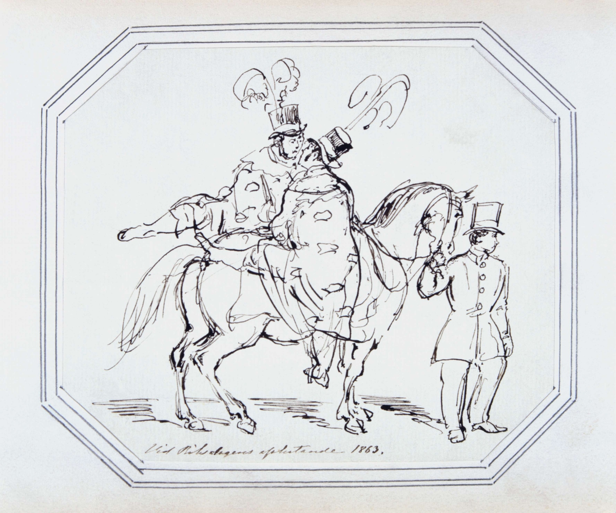 "Vid Riksdagens afslutande 1863". Tuschteckning av Fritz von Dardel, 1863
