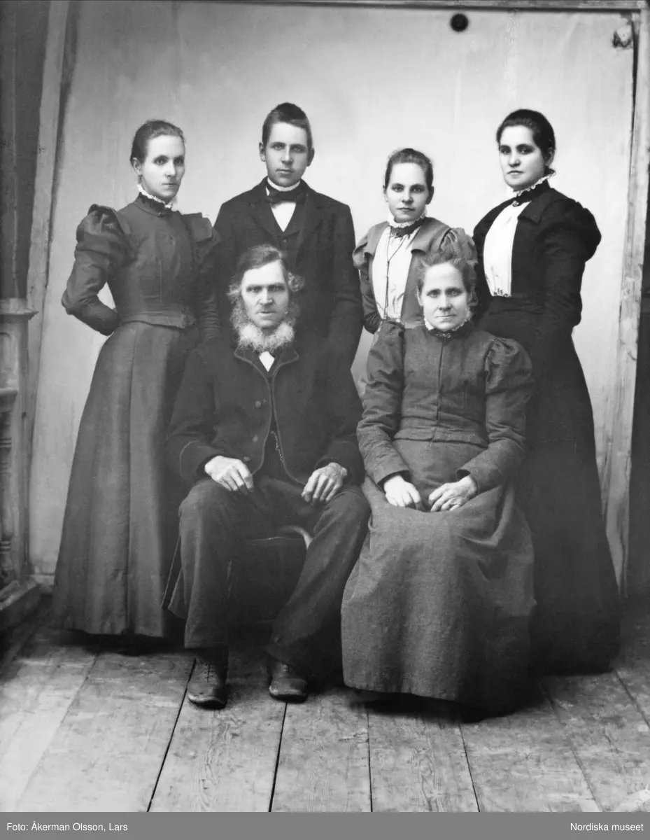 Ateljéporträtt. "Sittandes: Lispa Per, Karin Eriksson Ståendes från vänster Anna, Edvard Mathilda och Johanna."