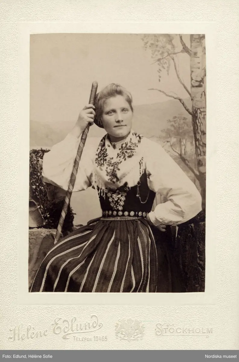 Porträtt på en kvinna klädd i Leksandsdräkt, Dalarna.