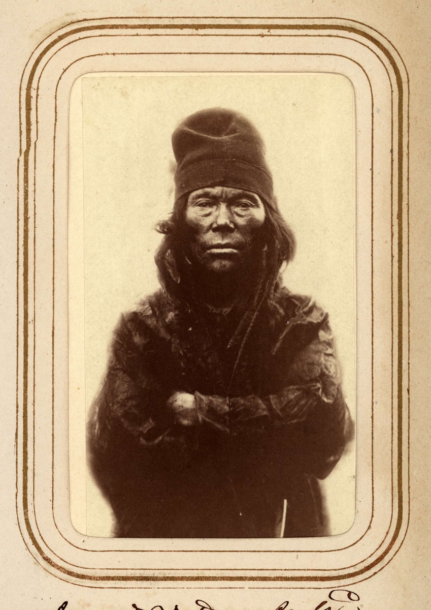 Porträtt av Inga Amundsdotter, 76 år, Sjokksjokk. Ur Lotten von Dübens fotoalbum med motiv från den etnologiska expedition till Lappland som leddes av hennes make Gustaf von Düben 1868.