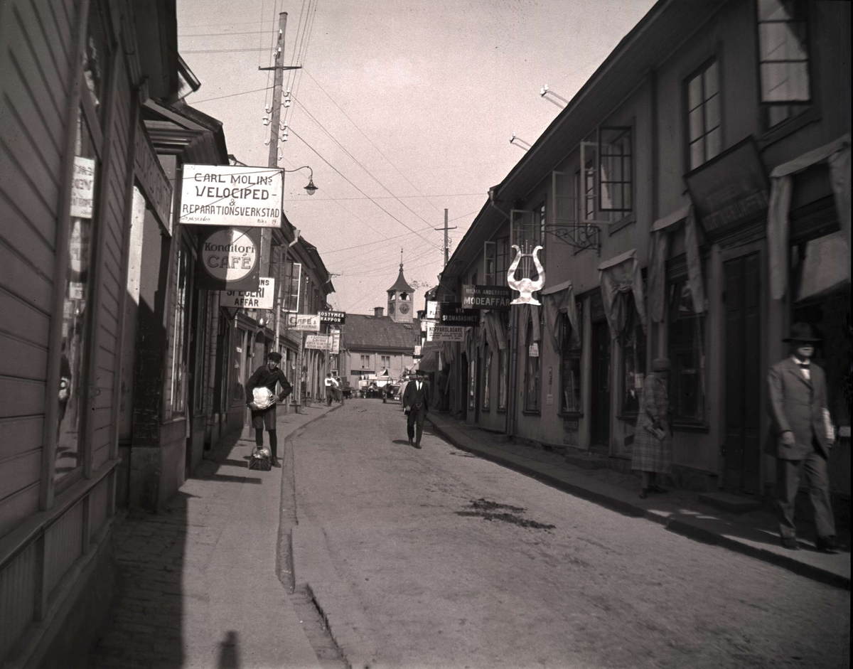 Norrtälje. Posthusgatan mot väster. T.v. kvarteret Venus, t.h. kvarteret Pelikan.