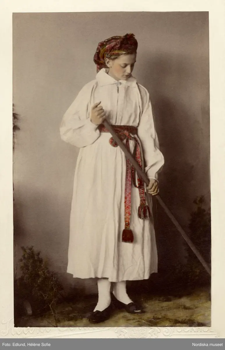 Höstpiga från Skåne klädd i vanlig skördedräkt