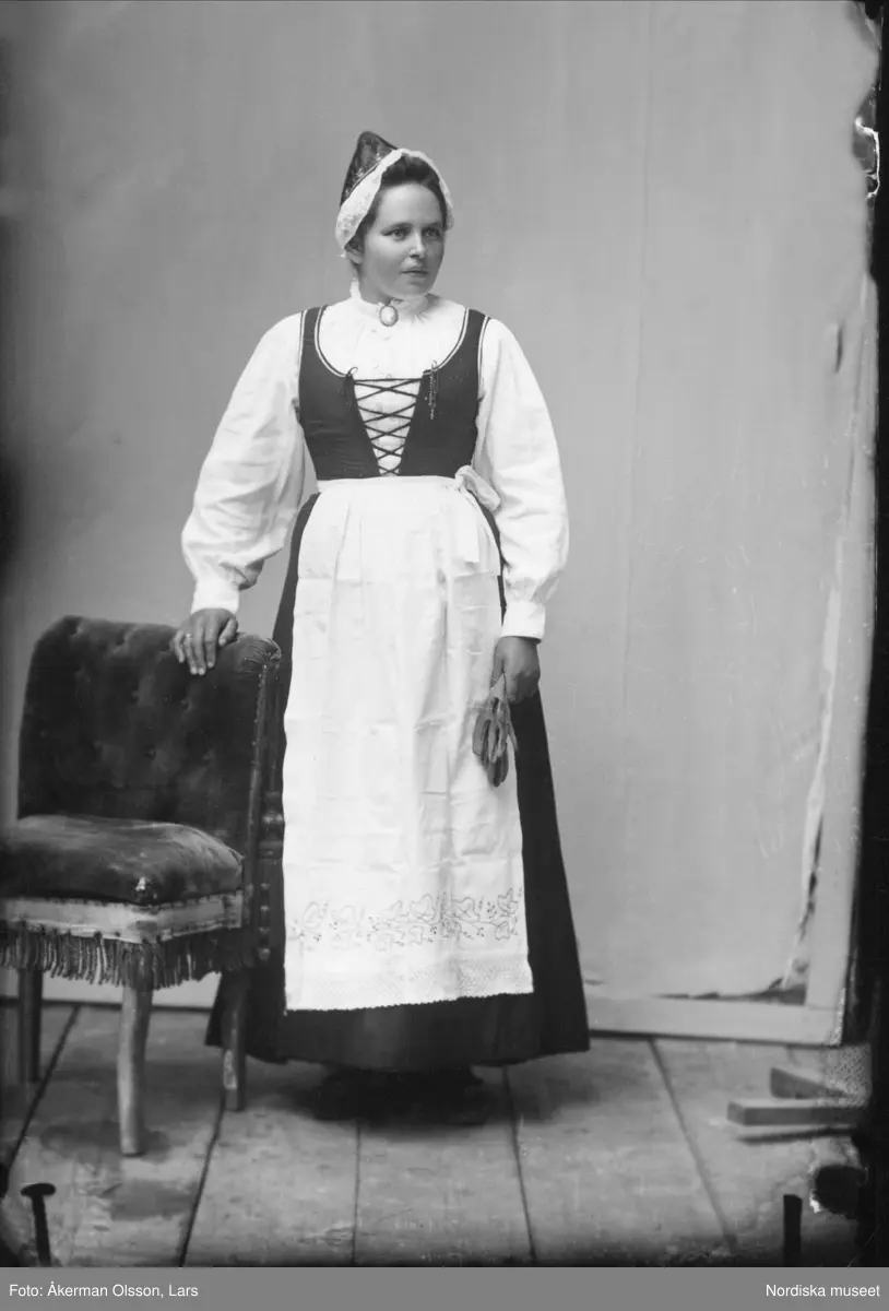 Elise Larsson f Johansson från Rörbäcknäs, Lima socken, Dalarna klädd i hembygdsdräkt