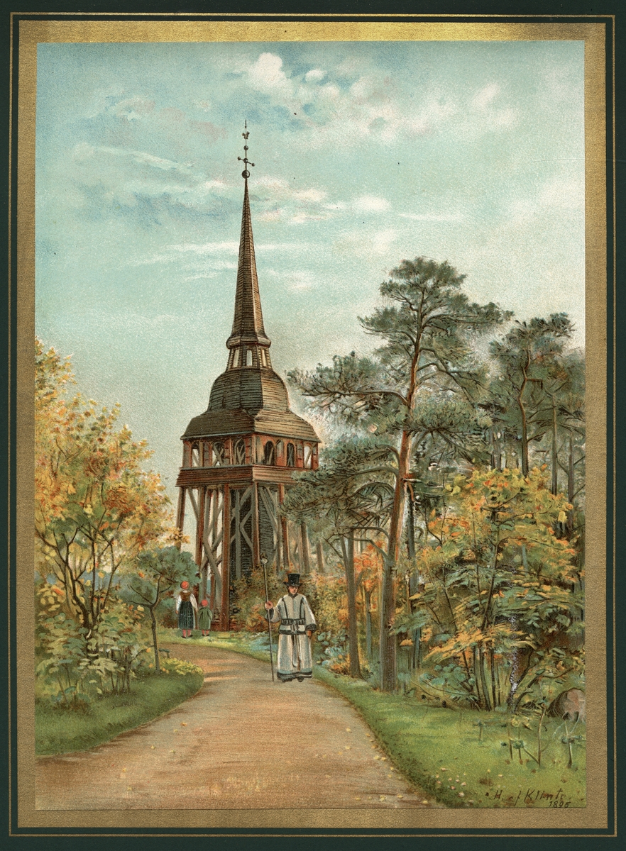 Hällestadstapeln på Skansen i Stockholm. Målad av Hilma af Klint 1895. Illustration ur Bilder från Skansen utgiven av Artur Hazelius.