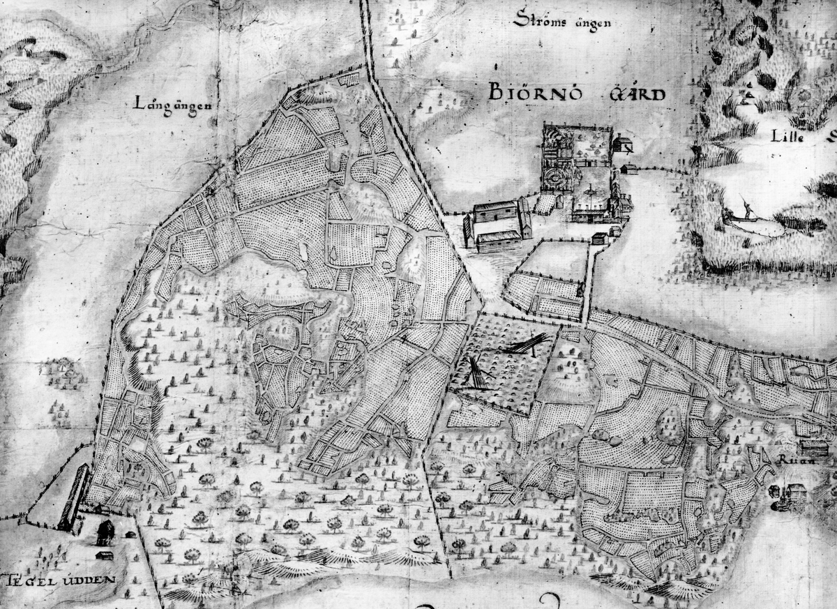 Detalj av karta från 1665 över Björnö, Frötuna socken, Uppland. Inv.nr NM.0145879