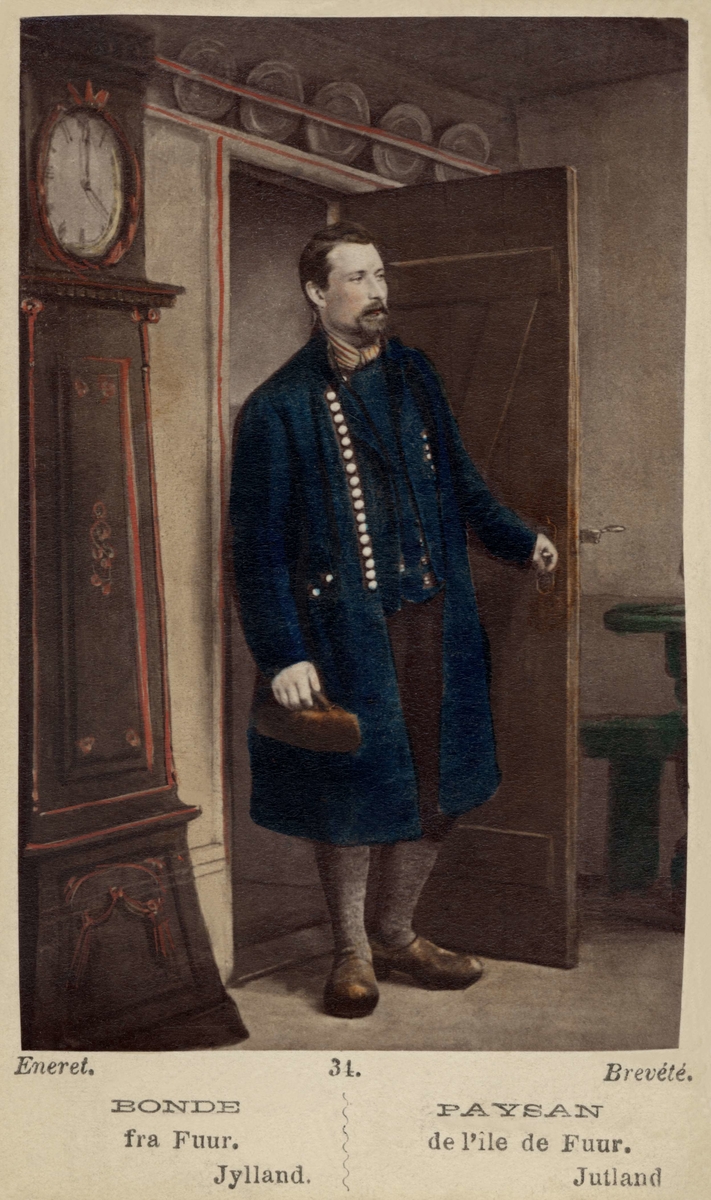 En man står i dörröppningen klädd i sockendräkt