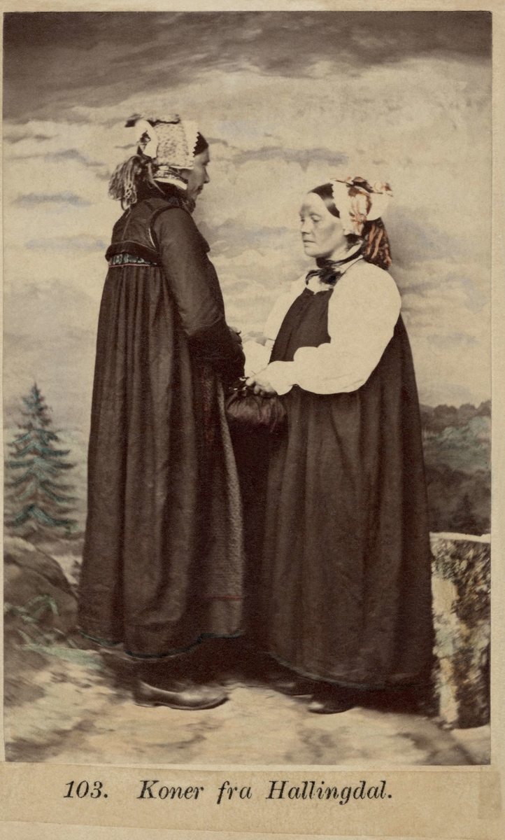 Koner fra Hallingdal." Två kvinnor från Hallingdal, Norge