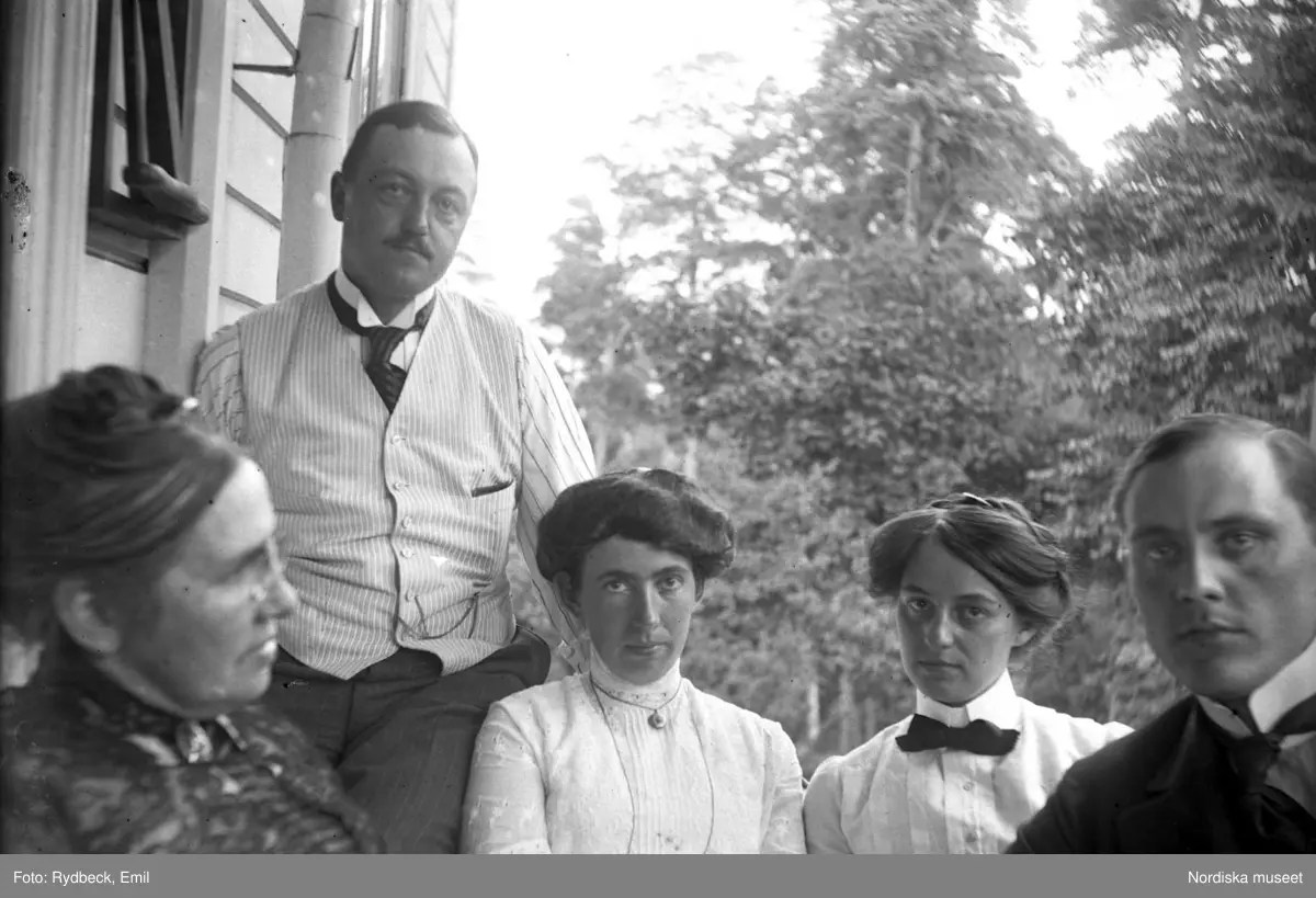 Gruppbild. Augusta Olson, Oscar, Signe och Anna Rydbeck, Waldemar Personne i Anneberg (Stocksund).