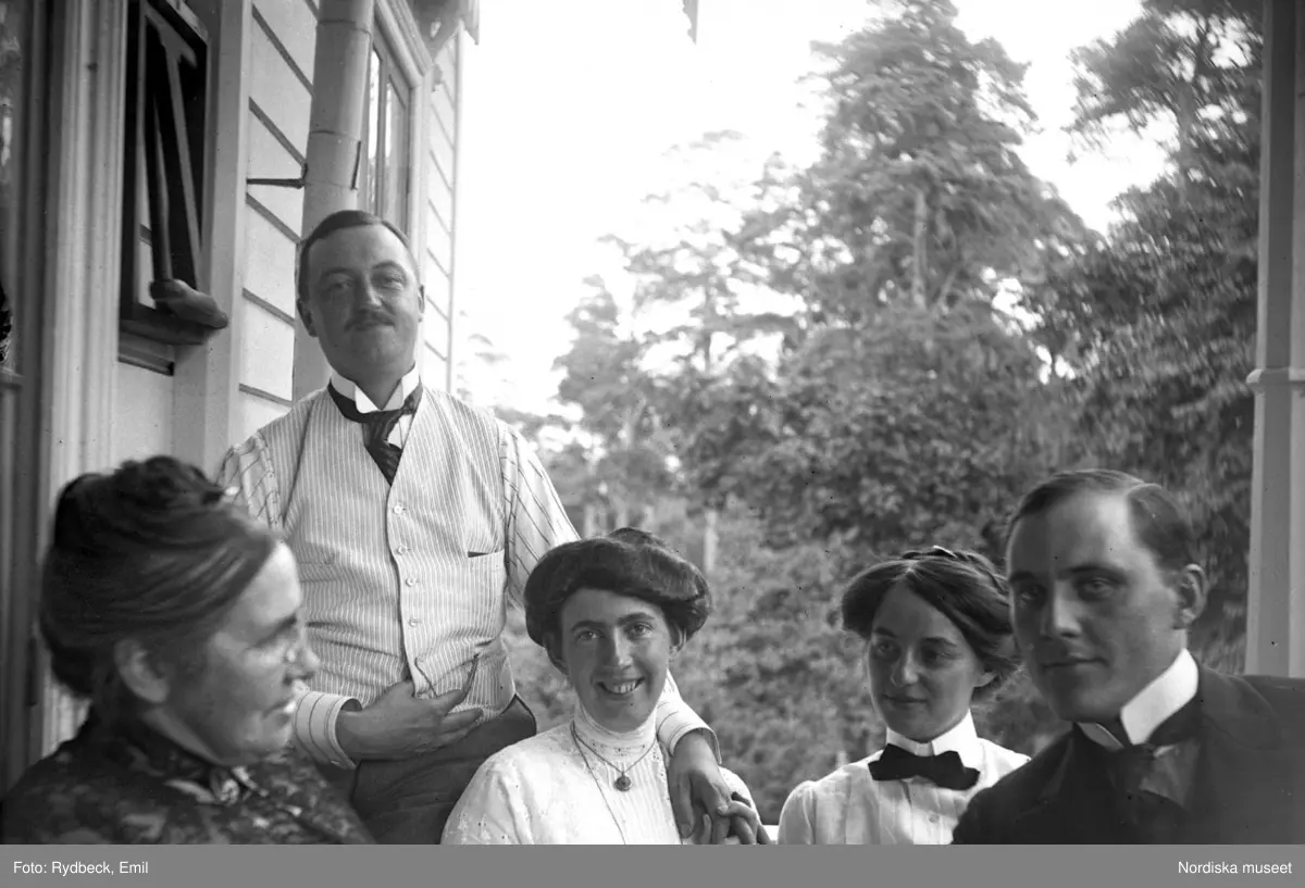 Gruppbild. Augusta Olson, Oscar , Signe, Anna Rydbeck, Waldemar Personne i Anneberg (Stocksund).