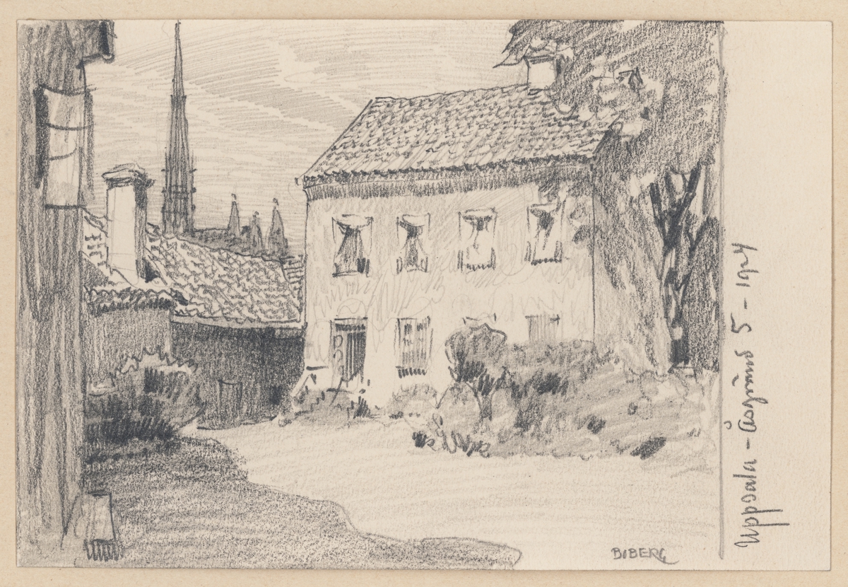 Uppsala. Åsgränd 5, 1924. Blyertsteckning av Ferdinand Boberg.
