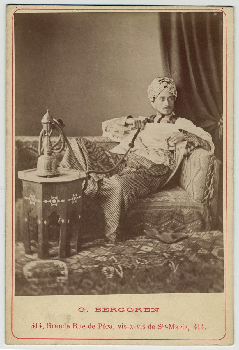 Markis Claes Lagergren (1853-1930) i österländsk dräkt rökandes vattenpipa.