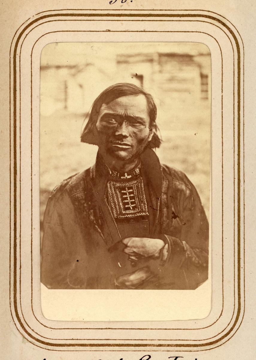 Porträtt av Anders Olof Pantsi, 34 år, Tuorpons sameby. Ur Lotten von Dübens fotoalbum med motiv från den etnologiska expedition till Lappland som leddes av hennes make Gustaf von Düben 1868.