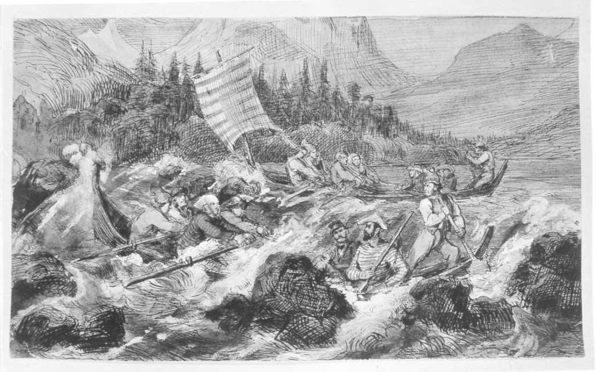 Teckning i tusch och krita av Fritz von Dardel. "Reseminnen från Norrland 1858".