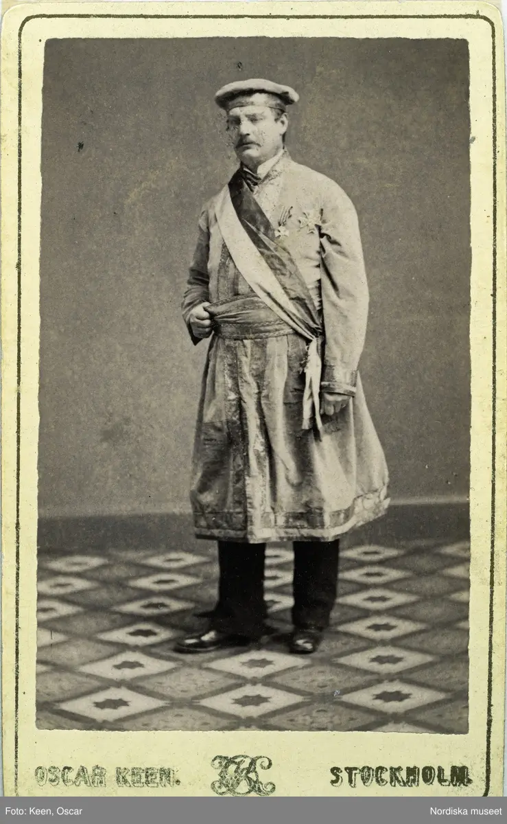 Man i frimurardräkt. Kabinettsporträtt.