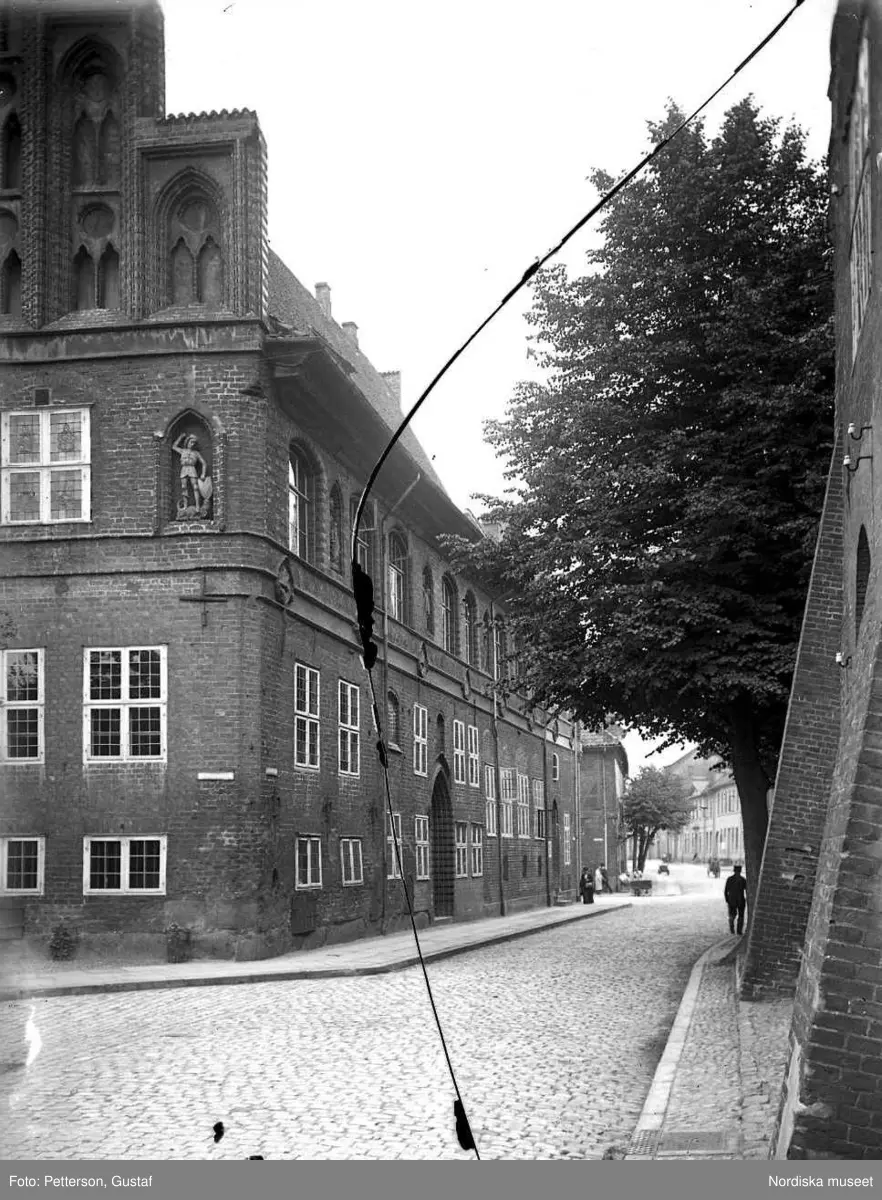 Vy från norra Tyskland, Lüneburg. Stadikammerei. Hörnet av Ochsenmarkt och Marienplatz.