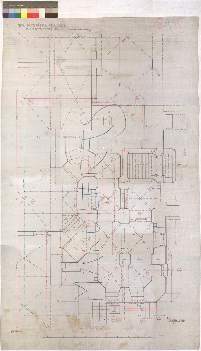 No 71 Nordiska museet. Plan af Midtelpartiets jordvåning (Främre högra delen)