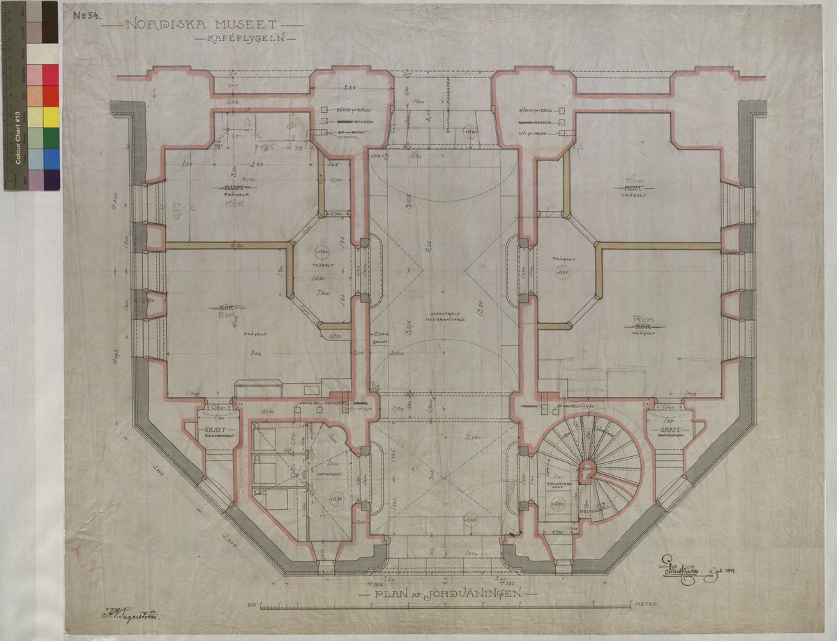 No 54. Nordiska museet. Kafeflygeln. Plan af jordvåningen.