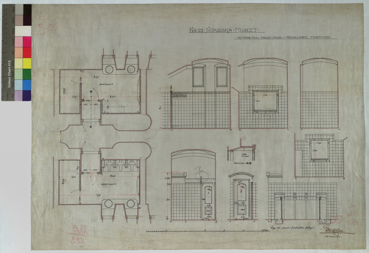 No 122. Nordiska Museet. Ritning till toilettrum i Midtelpart. Trapptorn.