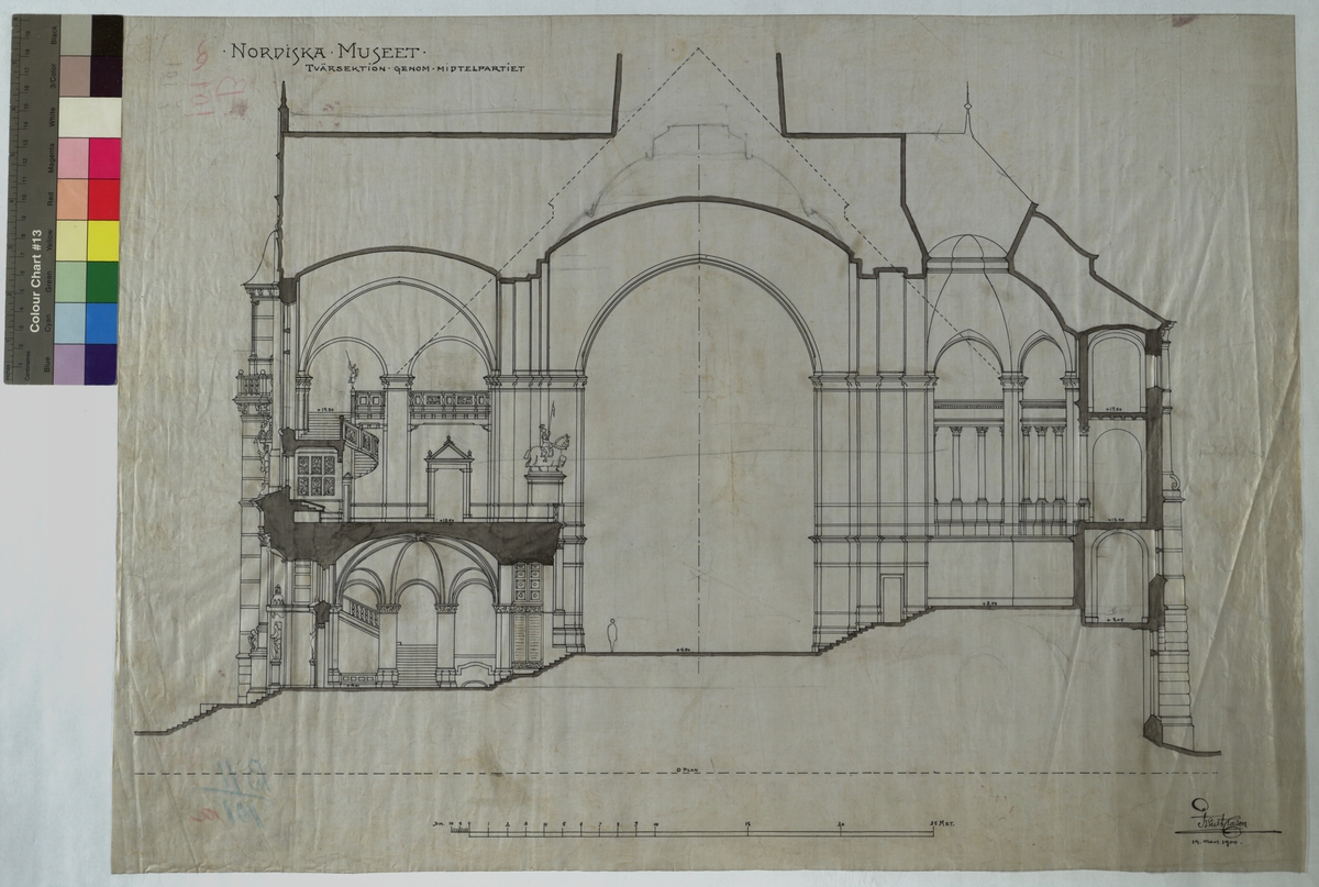 Nordiska museet. Tvärsektion genom midtelpartiet.