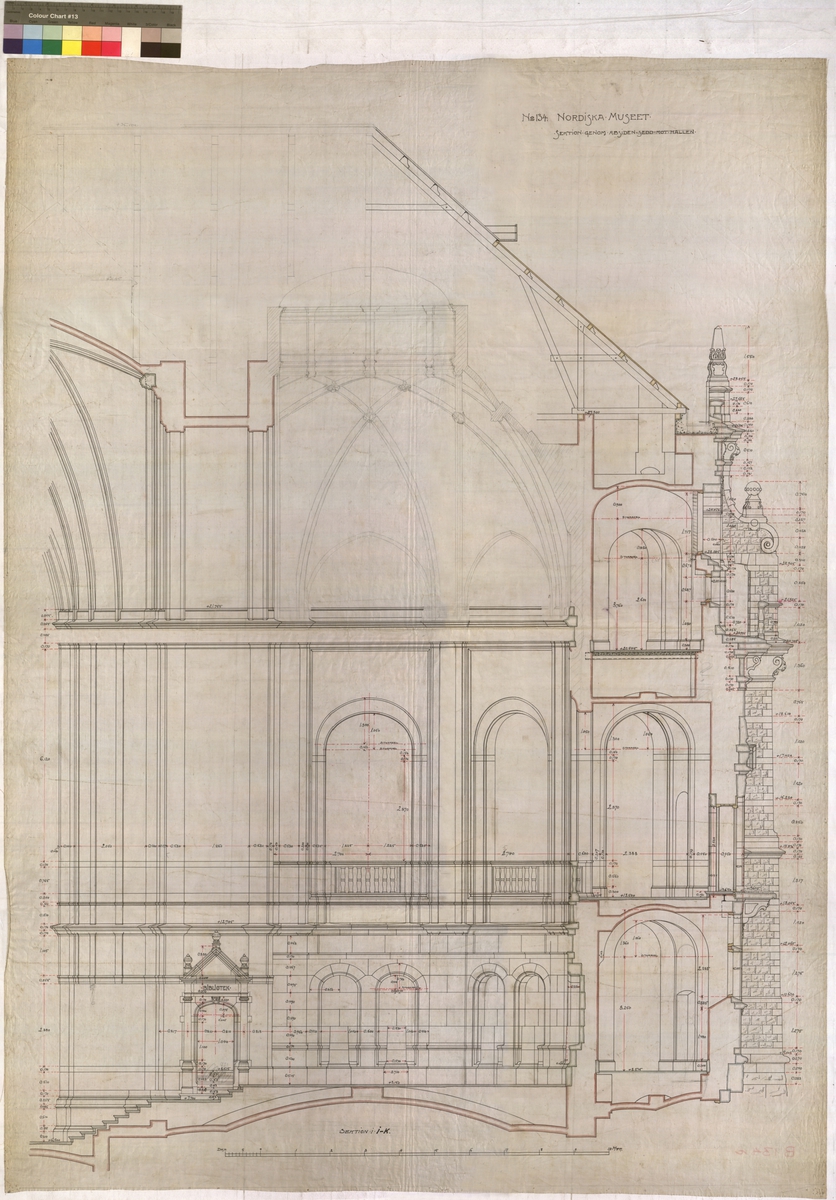 No 134. Nordiska Museet. Sektion genom Absiden mot hallen.